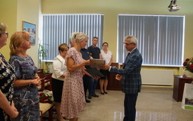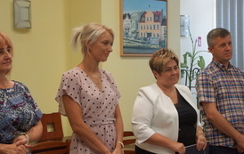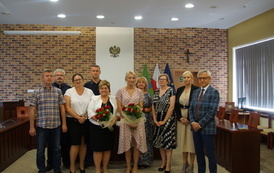 31 sierpnia w Urzędzie Miasta i Gminy w Mroczy w Sali im. Burmistrza Seweryna Ciążyńskiego nastąpiło oficjalne pożegnanie ustępującej Dyrektor – Grażyna Stachowska oraz powitanie nowej Dyrektor – Michaliny Długołęckiej. Okolicznościowe adresy i prezenty wręczyli: Zastępca Burmistrza Miasta i Gminy Mrocza – Waldemar Chudzik oraz Dyrektor Gminnego Zespołu Obsługi Oświaty w Mroczy – Alicja Babiarz – Synakiewicz. Obecni byli także: Dyrektor Miejsko-Gminnego Ośrodka Pomocy Społecznej – Gabriela Trzeciakowska, Kierownik Referatu Rolnictwa, Gospodarki Nieruchomościami i Ochrony Środowiska – Arleta Fridehl, Kierownik Referatu Inwestycji i Gospodarki Przestrzennej – Krzysztof Wiese, Kierownik Referatu Obsługi Komunalnej – Paweł Górecki, Kierownik Referatu Obsługi Administracyjnej i Promocji – Joanna Murawiec i Komendant Straży Miejskiej w Mroczy – Jacek Ćwikła. Ze względu na pełnione obowiązki służbowe w późniejszym terminie dołączyła także Skarbnik Miasta i Gminy Mrocza – Natalia Zmudzińska.